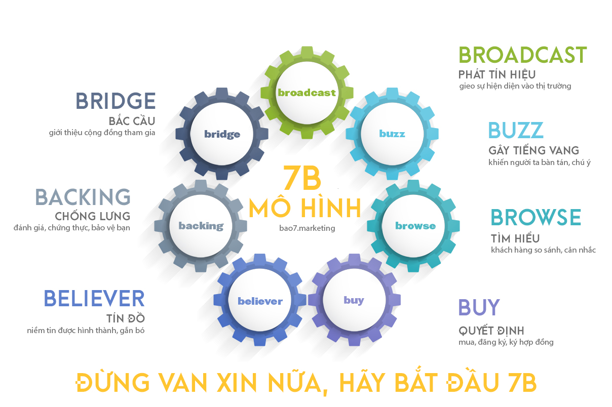 Framework gồm 7 bánh răng: Broadcast, Buzz, Browse, Buy, Believer, Backing, Bridge. Mỗi bánh răng là một đòn bẩy ảnh hưởng.